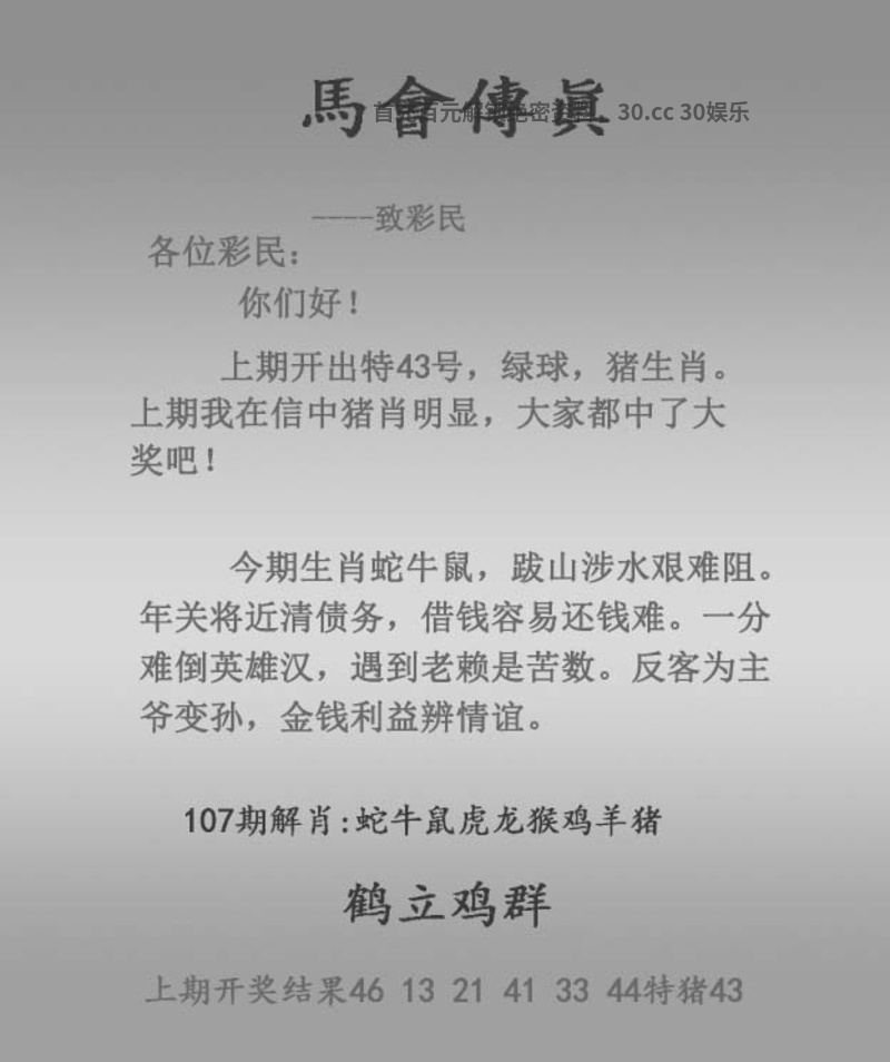 解:今期生肖看大门,一路顺风坐马车,看大门狗肖,明肖马,十四十五二八中,十三二三轮流出,14龙,15兔,28虎,13蛇,23羊,生肖送你鸡兔蛇,猴马鼠肖不能缺,明肖鸡兔蛇猴马鼠,五音之内开连码,三零开出十三得,30鼠,13蛇。